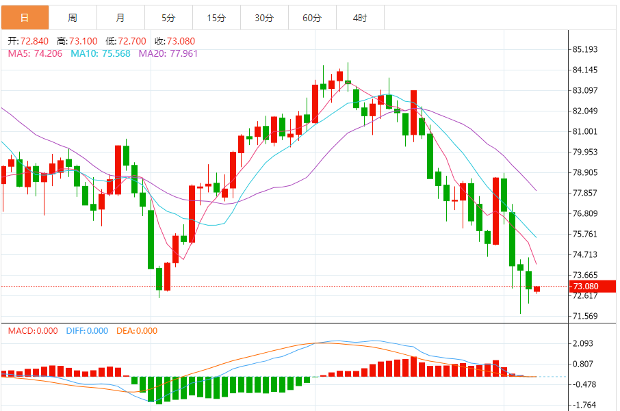 周三(8月7日) ,国际油价低位徘徊,美原油目前交投于72.93美元/桶附近 。周二油价延续疲软走势,未能远离周一触及的近半年低位,尽管金融市场从近期的低迷中有所恢复 ,但EIA月报下调价格预期,而且伊朗在报复或克制之间纠结,地缘局势担忧情绪有所缓解 ,不过利比亚产量下降仍给油价提供一些支撑。